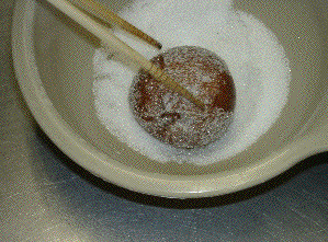 暖かいうちにグラニュー糖をまぶす