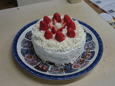 作り方 @ 卵を共立てで泡立てる A 砂糖を入れて湯せんにする(体温くらい) 10分以内で泡立てる 泡立てでスポンジの善し悪しが決まる B 牛乳を入れホイッパーをボールに付けたまま 泡立てる C 薄力粉とBPを入れしゃもじで切るように、 手早く粉が見えないように混ぜる 粘りを出さないように D オーブンを170から180度Cに予熱しておき 35から40分間焼く 1日置くとしっとりして美味しくなる |