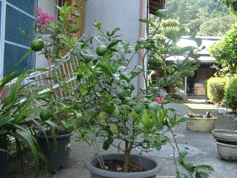 鉢植えの檸檬です。花はとても良い香り。 昨年は10個採れたので