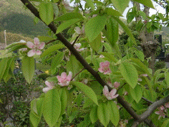 4月19日 かりんのかれんな花 カリンの実は焼酎漬け。咽に良いそうだ。