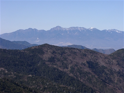 西には八ヶ岳、その北側には北アルプスの山並み。