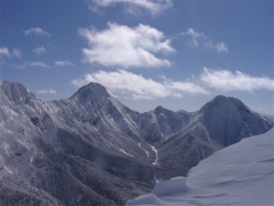雪の下りは速い、上りにかかった時間が嘘のよう。赤岩の頭を過ぎると風が凪いだ。