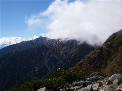 宝剣山荘に戻ると駒峰ヒュッテを予約してある人たちが予定を変更して下ると言う。