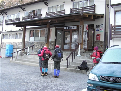 1:40渋の湯着、道路に雪はあったがチェーンを着けるほどではなかった。