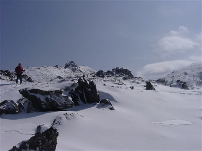下ってしまった。雪が岩の凸凹を消して歩きやすい。雪の下りは速い。