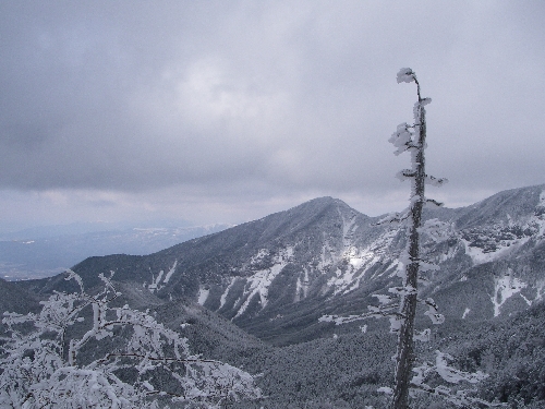 樹氷、その向こうが阿弥陀岳