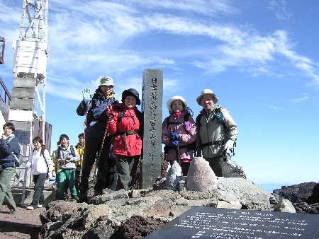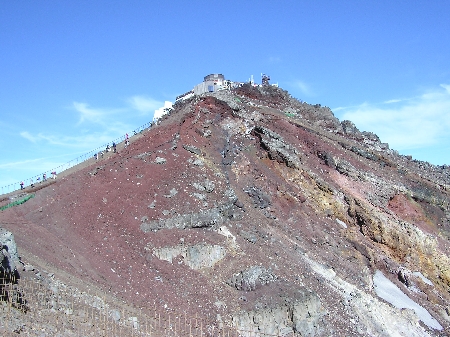 9合目から1時間とちょっとで富士宮口頂上、胸突き八丁をものともせず登りきった。朝の足は速い。