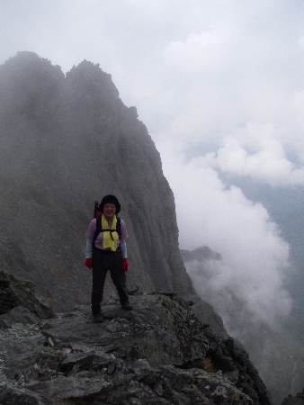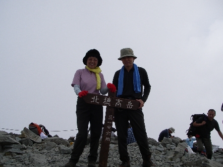 空荷で登るのは楽、アッというまに北穂山頂に着いた。