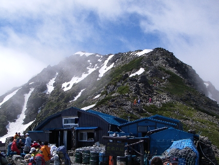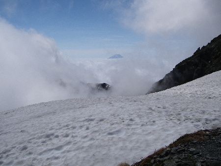 キタダケソウを見て肩の小屋へ戻った。この頃になると霧が晴れて下山し難い。