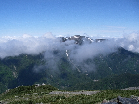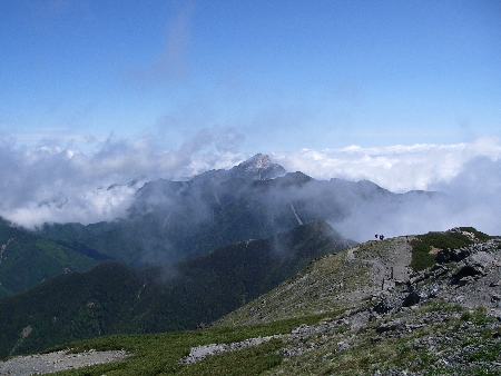 しばらく下ると夕べ小屋で隣りだった“でんでん虫の会”のおば様方と一緒になった。