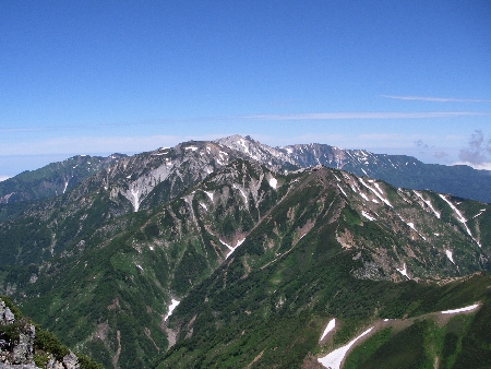 北に白馬が見える。つかさんご夫妻も今頃大雪渓を登っているのだろうか?