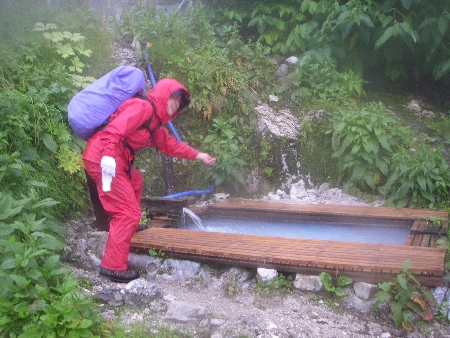 鑓温泉、手だけ入浴 |