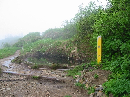 登山届けを提出して歩き始めるとすぐに霧雨、風はなかったのでコウモリ傘を差して歩いた。蒸し暑く汗が滴り落ちる。