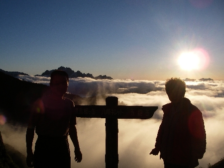 何回か山小屋に泊まったが、2人だけというのは初めて、記念写真に収めた。