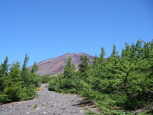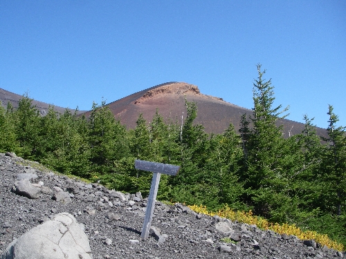 火山礫の斜面は踏み出した足がズルッと滑って疲れる。