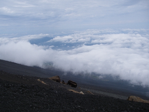 下界は雲で覆われてしまいほとんど見えなかったが山中湖の所だけ雲に穴が開いていた。