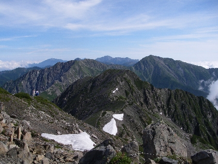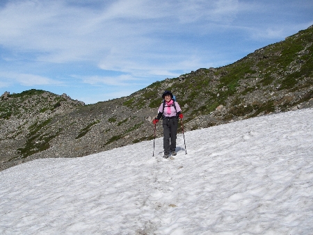 赤石避難小屋手前には雪渓がある。途中で会ったカメラマンに