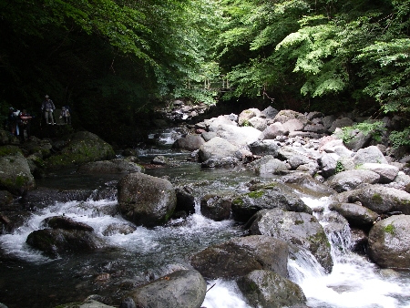 広葉樹林の中を沢の流れの音を聞きながら、