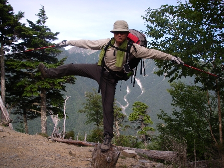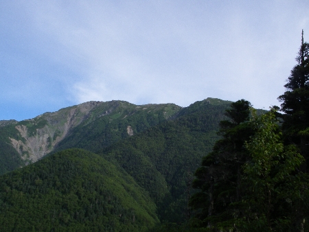 針葉樹林の中を下るので時々木々の間から山を眺めながらの歩き。