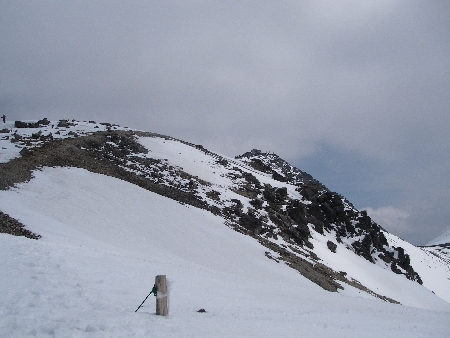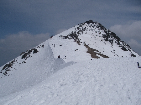 登山届けを出して出発、すぐにアイゼンを着け上着を脱いだ。