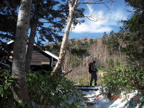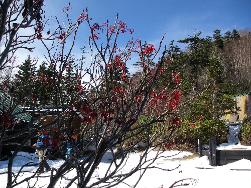 少し風が出て冷たい。だいぶ雪が増えてきたので此処でアイゼンを着けた。