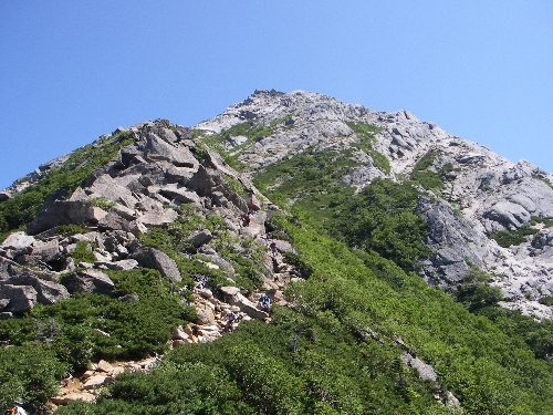 駒津峰からは一旦鞍部に下りそこから直登コース。