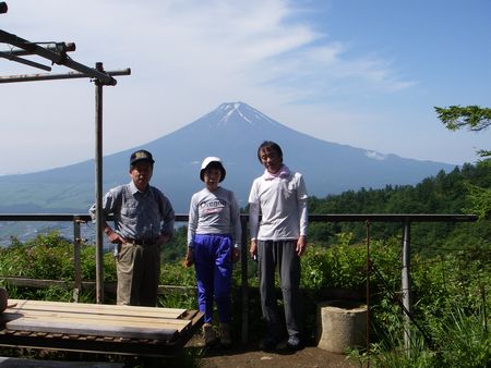 山荘の前からは山中湖や富士山がきれいに見えたので何枚もの写真を撮った。 小腹が減ったので少し食べてから山頂へ向かった。 山頂には方位盤があったが周りの山は目に入らず、ただ富士山に見惚れる。