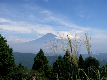 手でススキをかき分けて足で踏んで行くのだが、半袖なので腕が切れる。