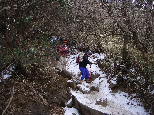 長尾山の登り下りは結構急で雪が付いているのでなお更滑る。