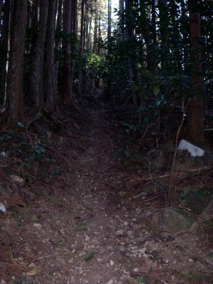 左の写真は水が流れて掘れて来た登山道、5〜6年前までは鉈や鋸を