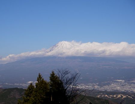 午後から登り始めたためだろう、富士山にはだいぶ雲が