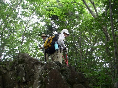 富士山は雲で見えずとにかく蒸し暑い。下りも急で下っていても汗が出てくる。 何度かアップダウンを繰り返して大権首峠(おおざすとうげ)まで下る。 大権首峠にはパラグライダー用のトイレがありモノレールが敷設されていた。