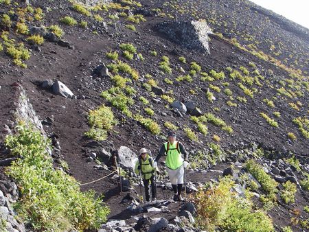 御殿場口頂上14:40 →赤岩八合館15:30 →16:20わらじ館16:25 →六合富士宮口分岐17:00 → 17:40宝永第一火口底17:50