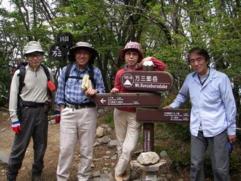 11:10万三郎岳着。少し早いが此処で昼食、いつもの