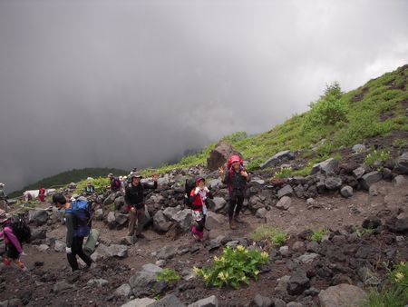 自宅7:10 =9:00五合目駐車場 11:00 →六合目11:25 →12:20新七合目12:30 →元祖七合目13:35