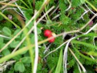 山頂近くにはコケモモの実が色付いていた。