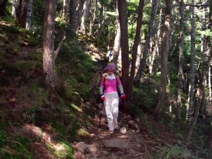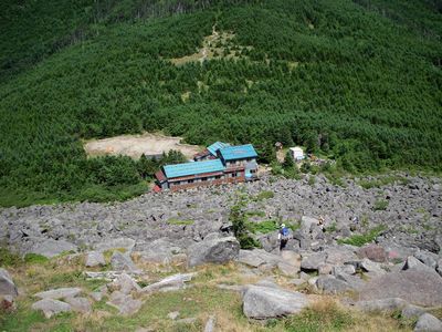 石がごろごろした道を下って青年小屋