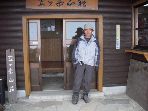 テント場から急坂を少し登ると笠ヶ岳山荘、やっと着いたという感じ。