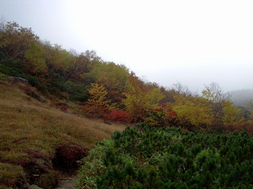 雨具を着けて下り始めると氷の粒が混じり杓子平に下る途中からは雪も降った。