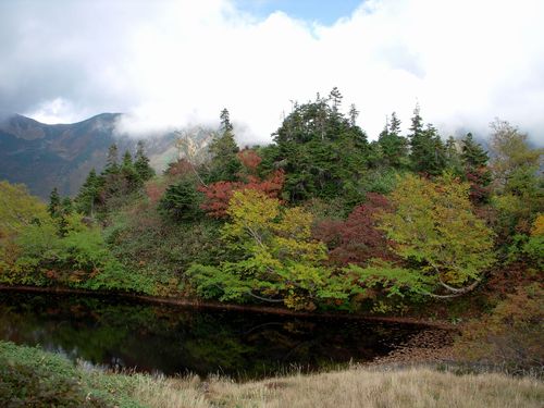 13:20 鏡平着、この頃になると雲が出て槍や穂高が見えなくなってしまった。