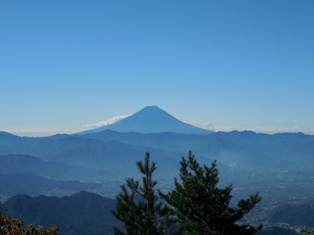 登山道は林道を行ったり何回か横切ったり、1時間とちょっと歩くと富士山が見えた。