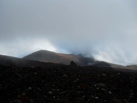八合目に着くとガスと風、上に行くと食べられないかも知れない。