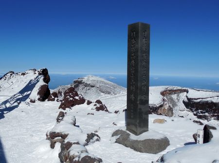 指先が冷えて痛くなった。剣ヶ峰からは空の青と雪のコントラストがきれい。
