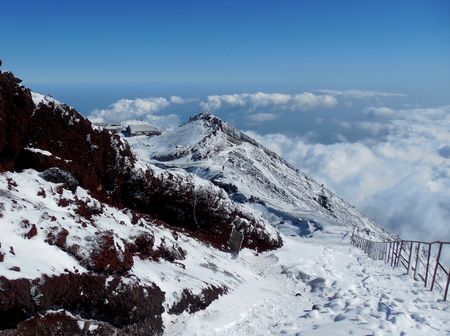 取り合えず剣ヶ峰へ登って来ようと歩く。馬の背は風の強い場所、体温を奪われ顔や耳が痛い。
