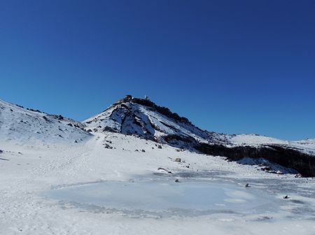 山頂は寒くて長居するところではない。写真を撮りながら奥宮の前まで下ると