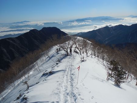 姿が見えなくなる。9時前には日帰りだという登山者が合戦の頭を越して来る。
