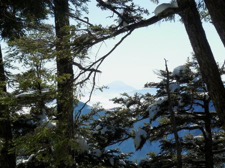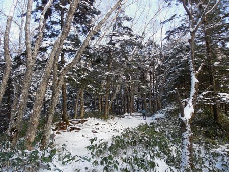 第1ベンチを過ぎて登山道が泥濘んできたのでアイゼンを外すとまた北向き斜面になり