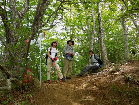 寂ショウ尾根はかなりの急勾配、一気に高度を稼いだ。新緑はきれいだが視界は妨げられる。