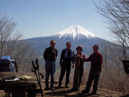 所々にキクザキイチゲの花を見ながら、2時間で長者ヶ岳山頂